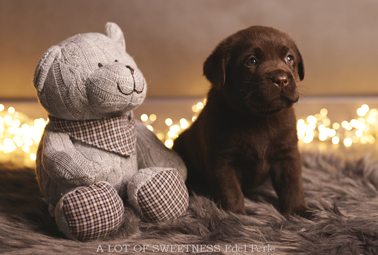 Megi to sptytna, przyjacielska i kochana suczka, która wniosła dużo ciepła do naszej rodziny. Uwielbia pieszczoty i często się ich domaga. Na spacerach jest bardzo ciekawska. Jej wiecznie merdający ogonek utwierdza mnie w przekonaniu, że jest bardzo radosna i przyjazna. Megi to nasza czekoladowa Perełka!